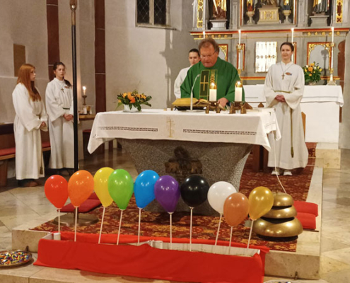 „Das ist heute ein besonderer Gottesdienst, der nicht umsonst unter das Thema ‚Schöpfung – Verantwortung für Mensch und Natur‘ gestellt ist“, begrüßte Pfarrer Markus Krell die Mitfeiernden zu Beginn des Gottesdienstes am 8. September in der Pfarrkirche St. Johannes der Täufer in Kirchberg vorm Wald. Denn heute, freute sich Krell, werde im Pfarrverband Tiefenbach der Startschuss für das Umwelt- und Nachhaltigkeitsprojekt ‚Seine Schöpfung! Deine Zukunft!‘ gegeben.
